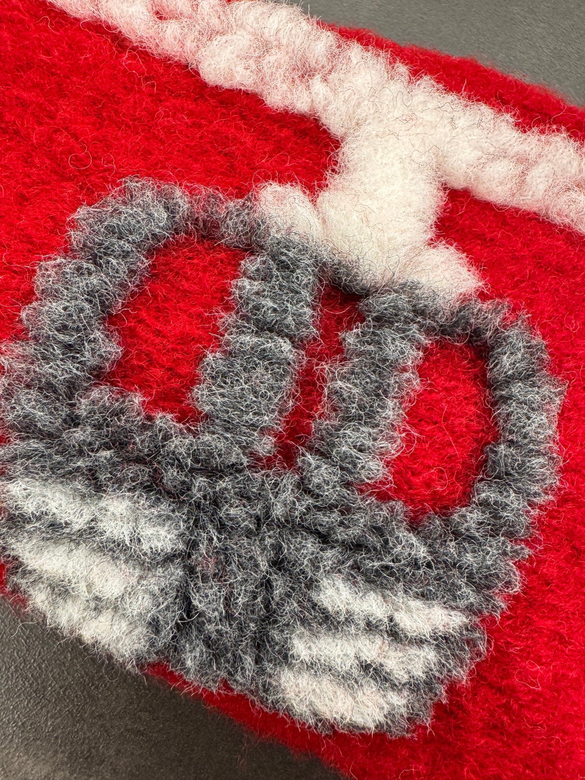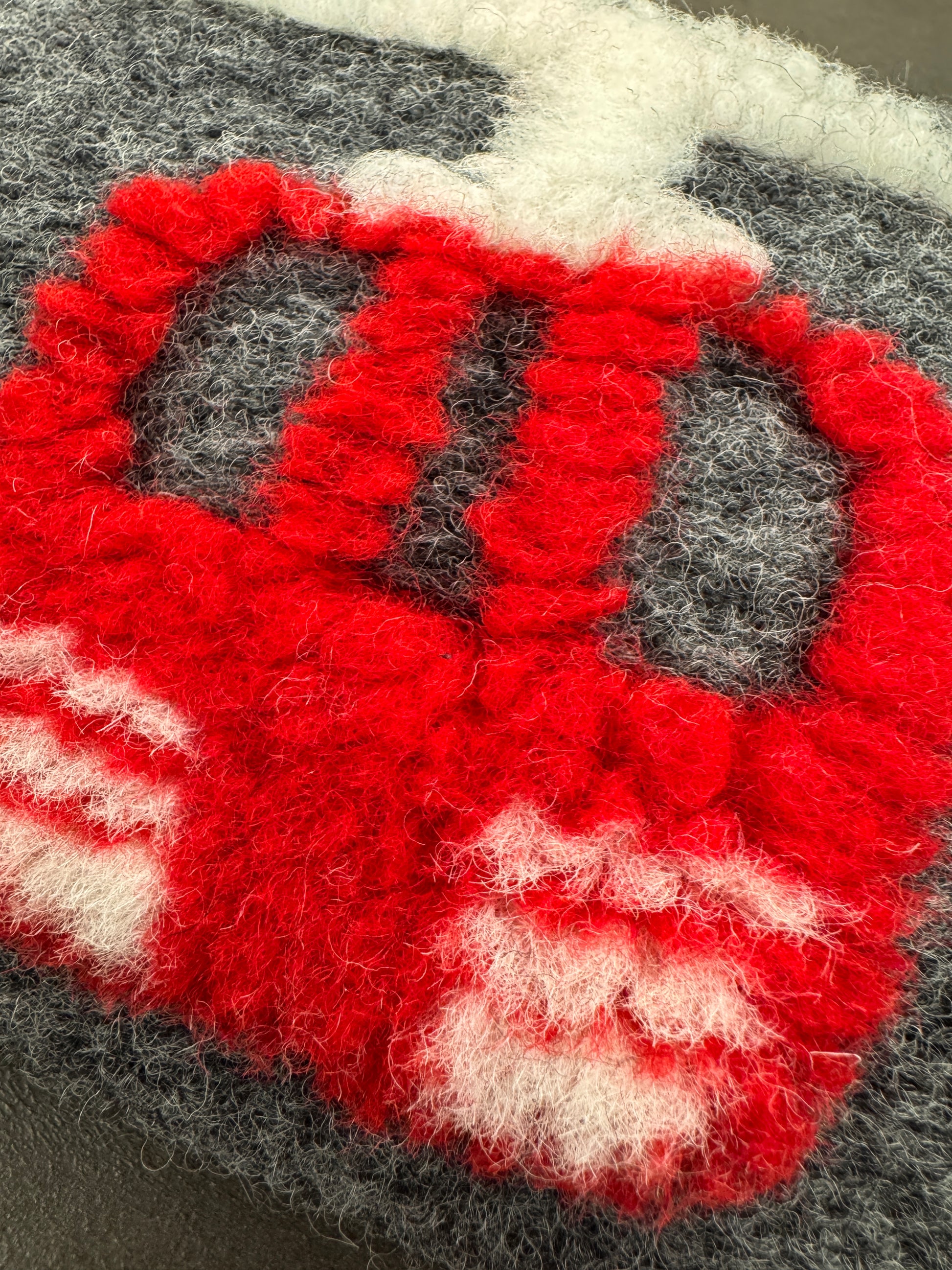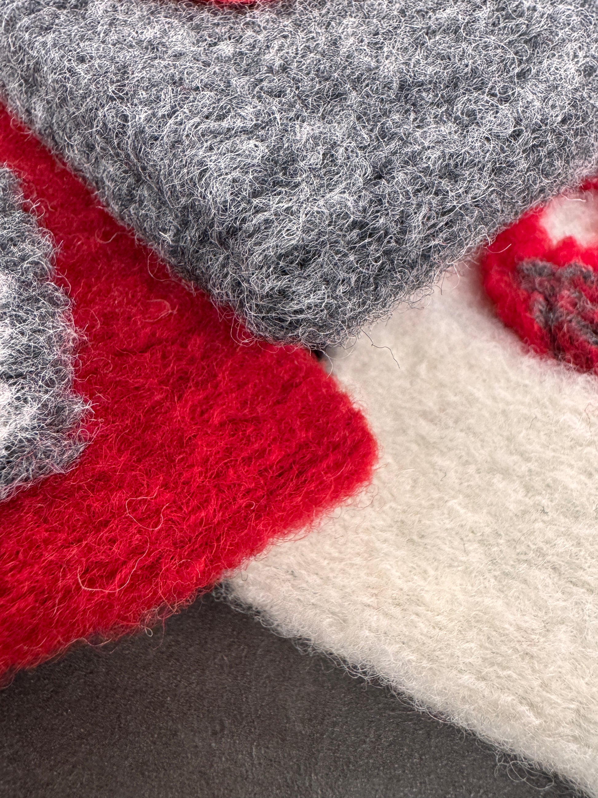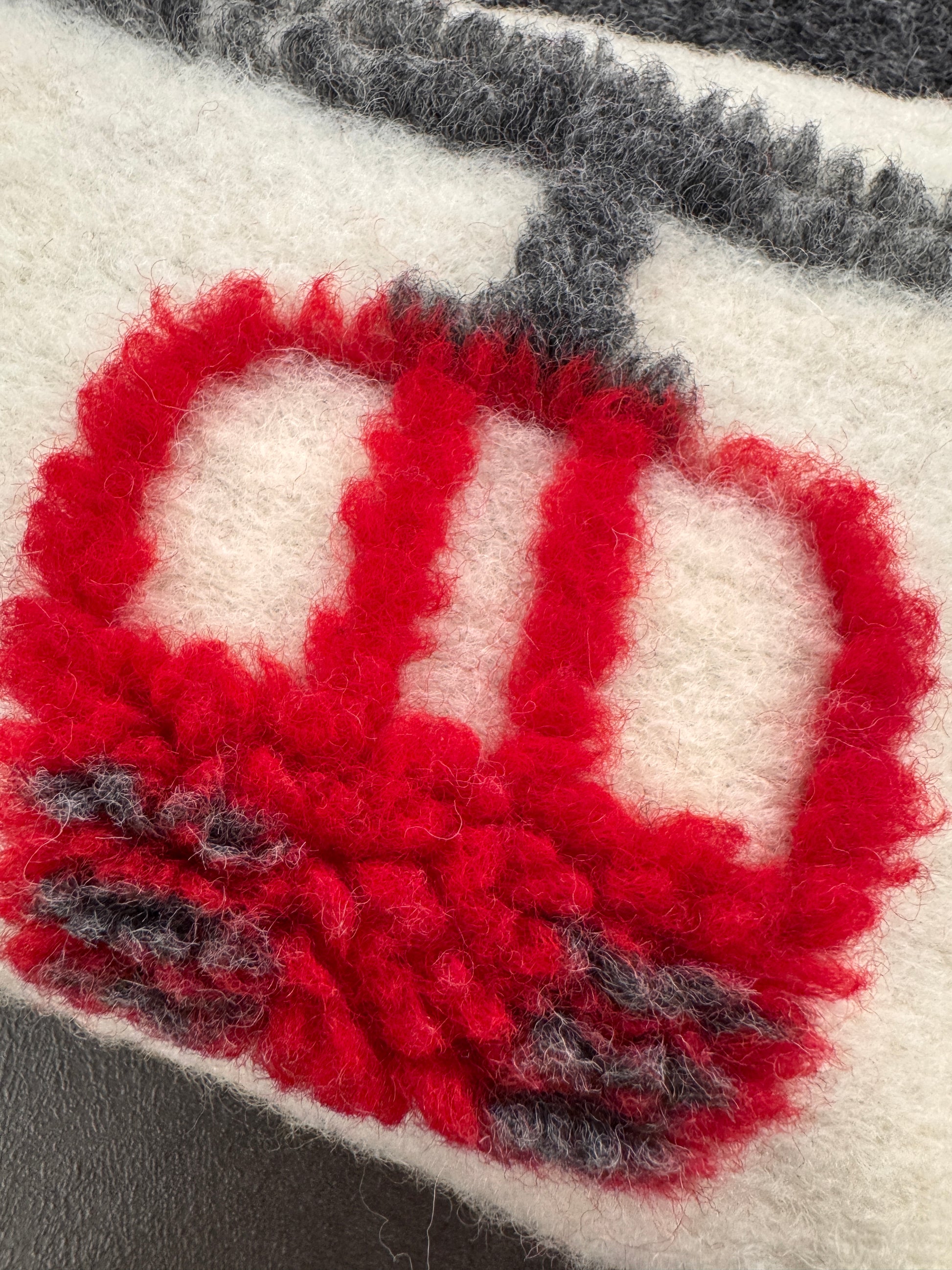 La lavorazione in lana le conferisce un aspetto caldo e naturale, mentre il ricamo a tema montano aggiunge un tocco unico e raffinato.
