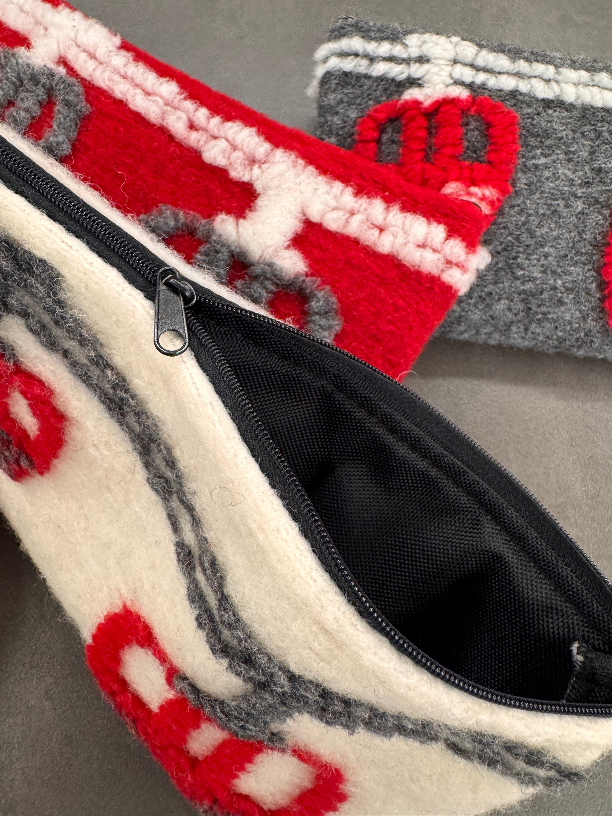 Pratica, morbida e dal design originale: la nostra pochette in lana è l’accessorio ideale per accompagnarti ogni giorno con stile. È perfetta come porta trucchi, porta documenti, oppure come custodia per telefono e piccoli oggetti personali.