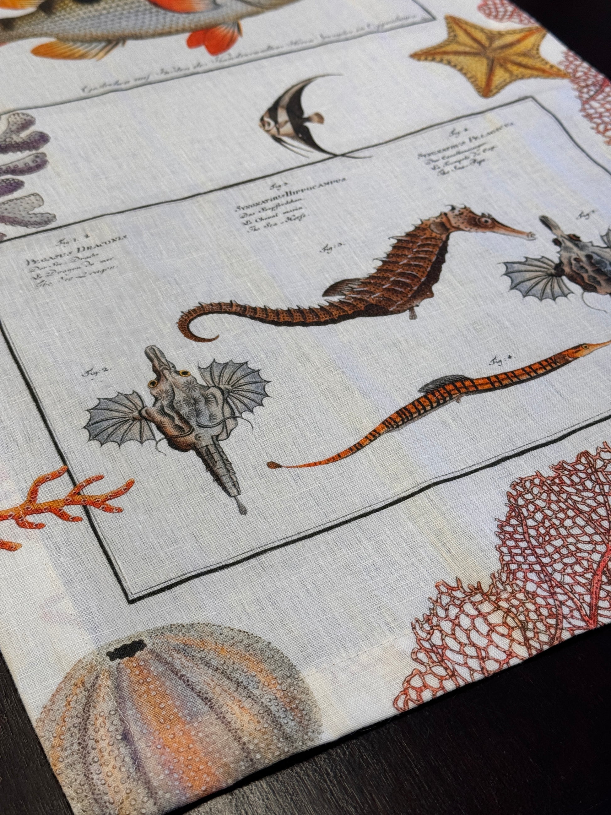 Realizzato in puro lino naturale, questo runner unisce l’eleganza dei materiali autentici al fascino del mare. Il tessuto, fresco e leggero, è caratterizzato da una trama fine ma resistente, tipica del lino di alta qualità.