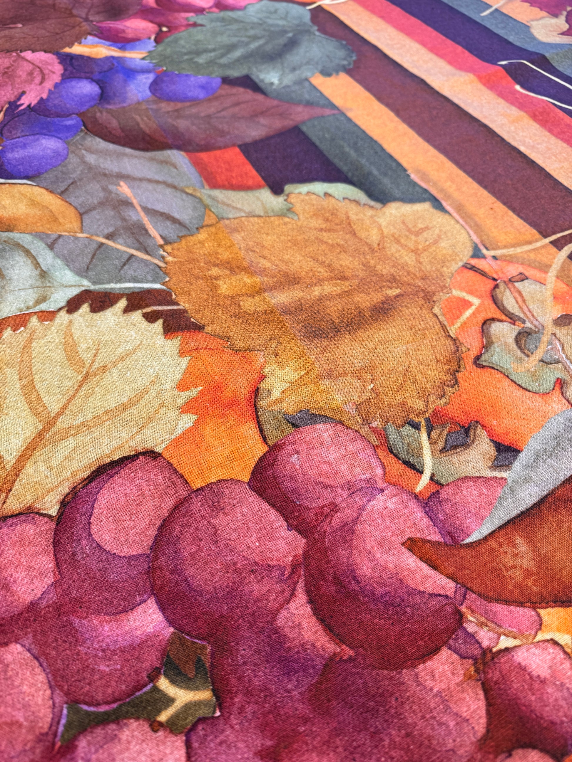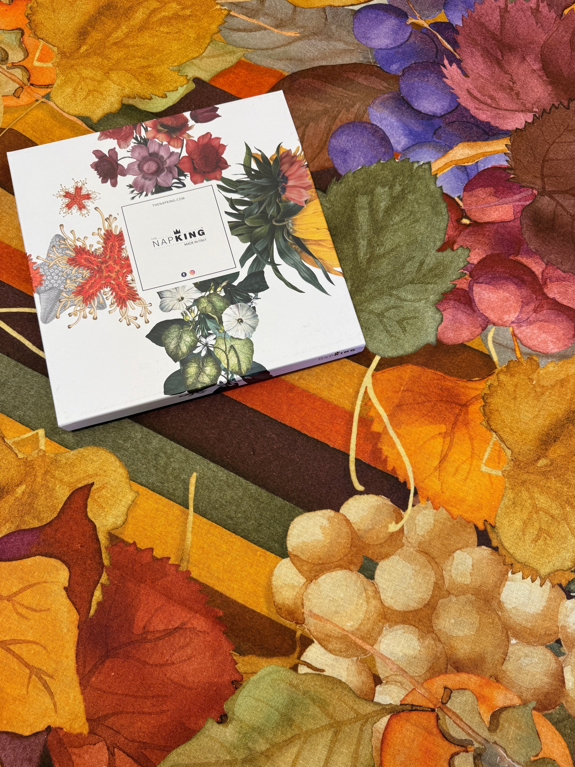 Porta in tavola l’atmosfera accogliente dell’autunno con la nostra tovaglia in 100% lino, decorata con motivi autunnali ispirati ai colori e alle forme della stagione.