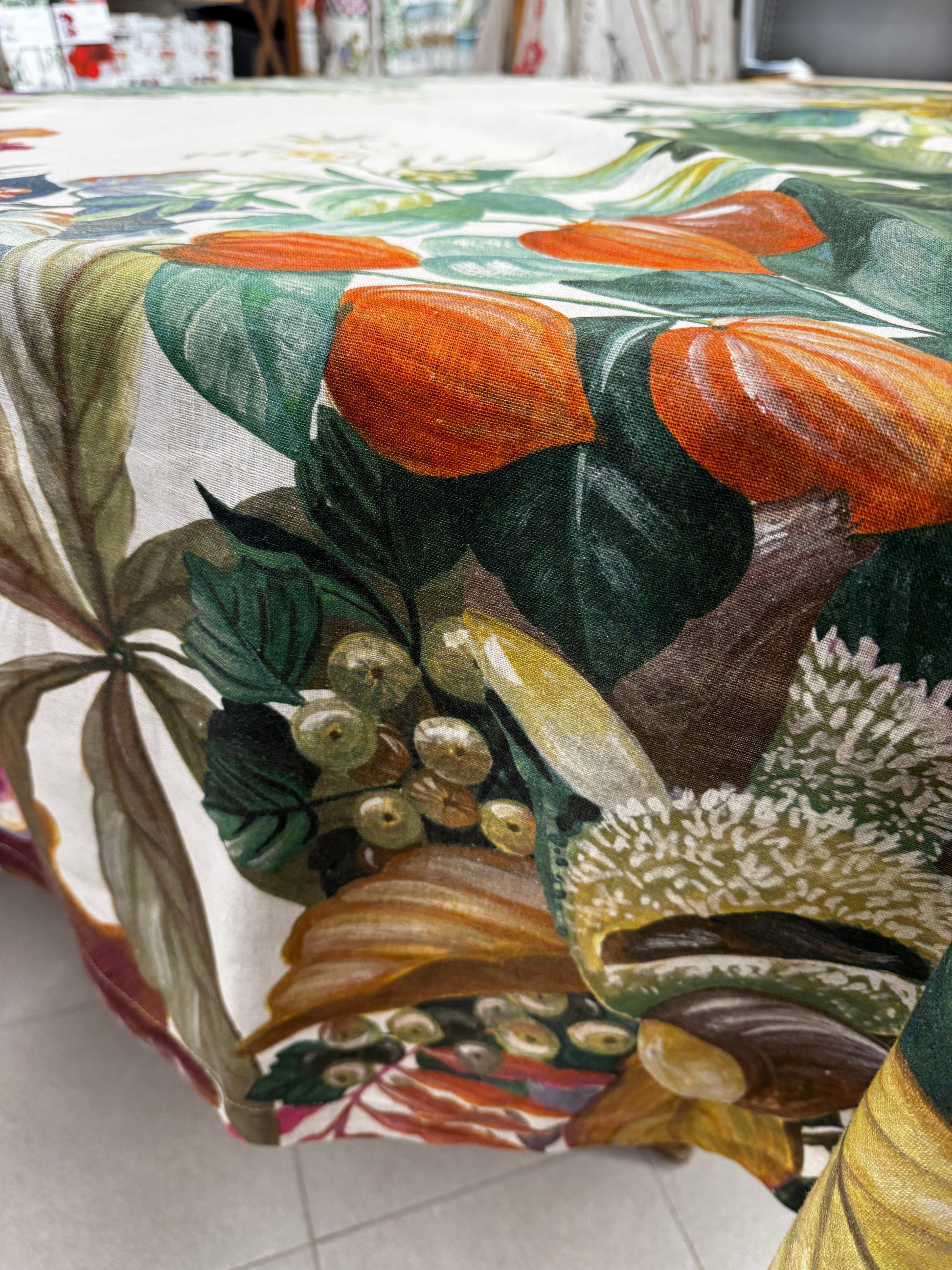 Elegante e naturale, questa tovaglia in puro lino 100% è ideale per vestire la tavola con stile e autenticità. Il lino, noto per la sua resistenza e traspirabilità, dona al tessuto una texture raffinata e un aspetto naturalmente elegante.
