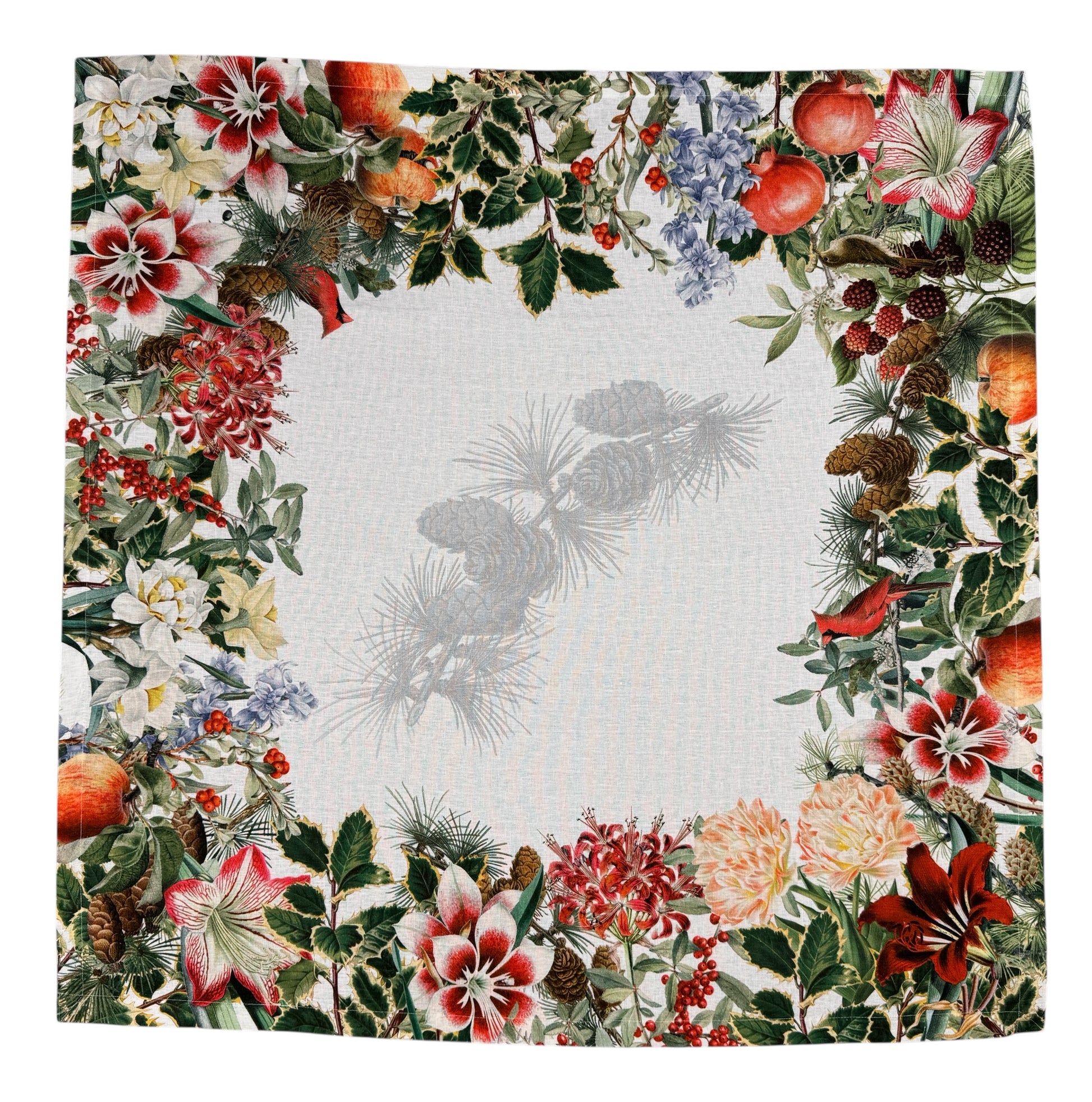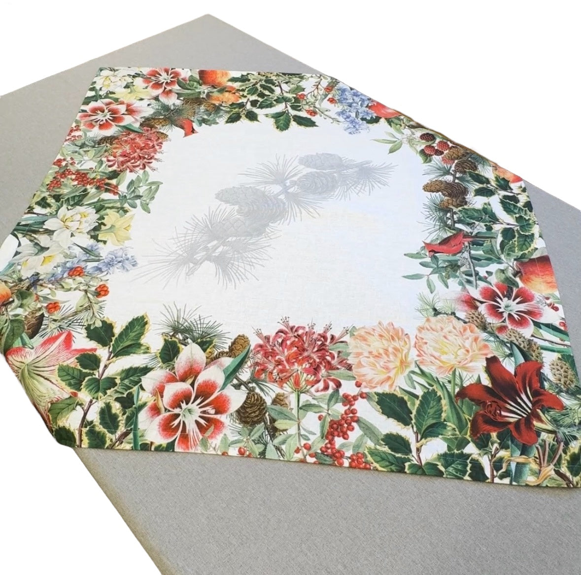Porta in tavola l’atmosfera accogliente dell’inverno con la nostra tovaglia in 100% lino, decorata con motivi invernali ispirati ai colori e alle forme della stagione.
