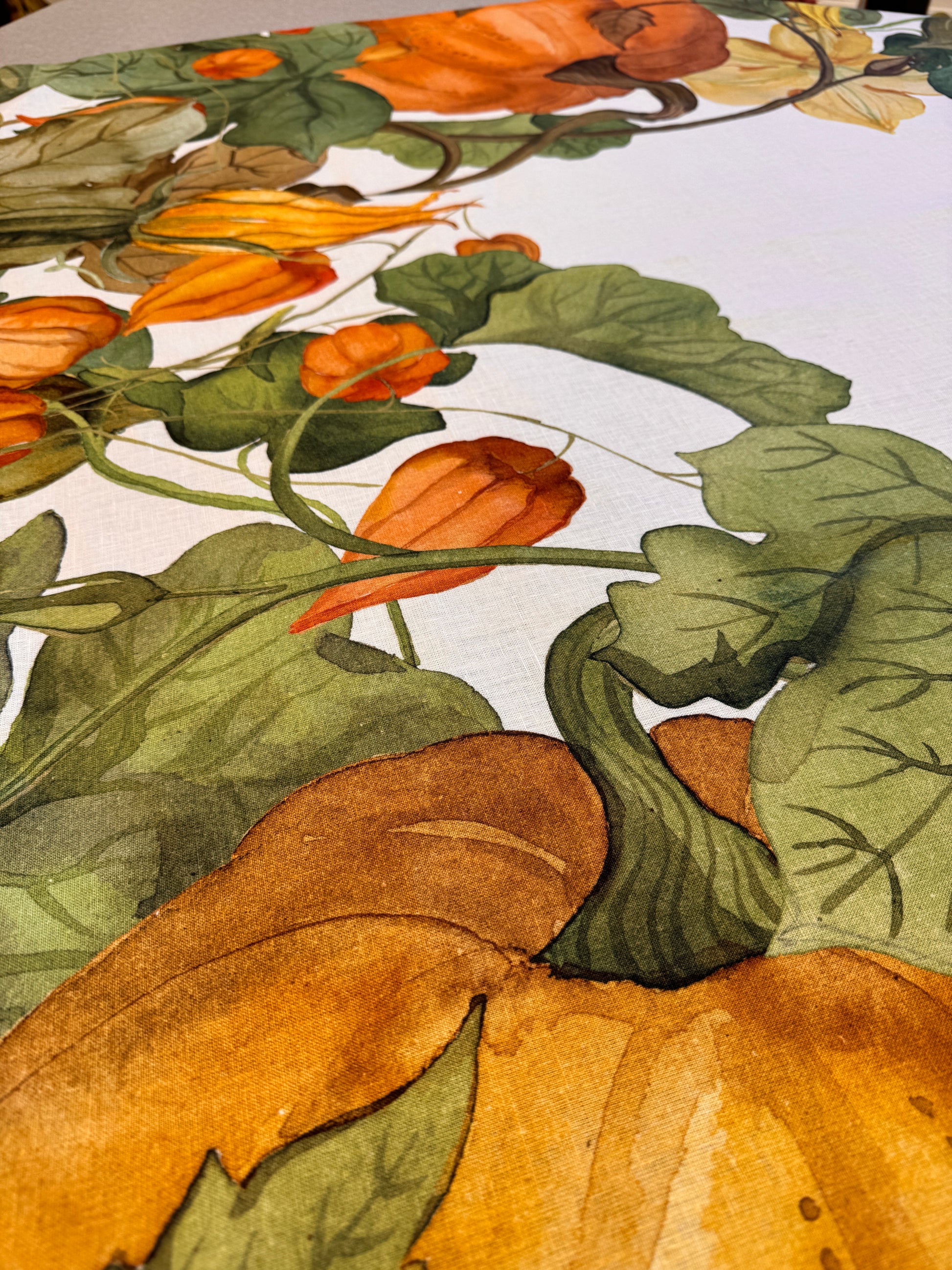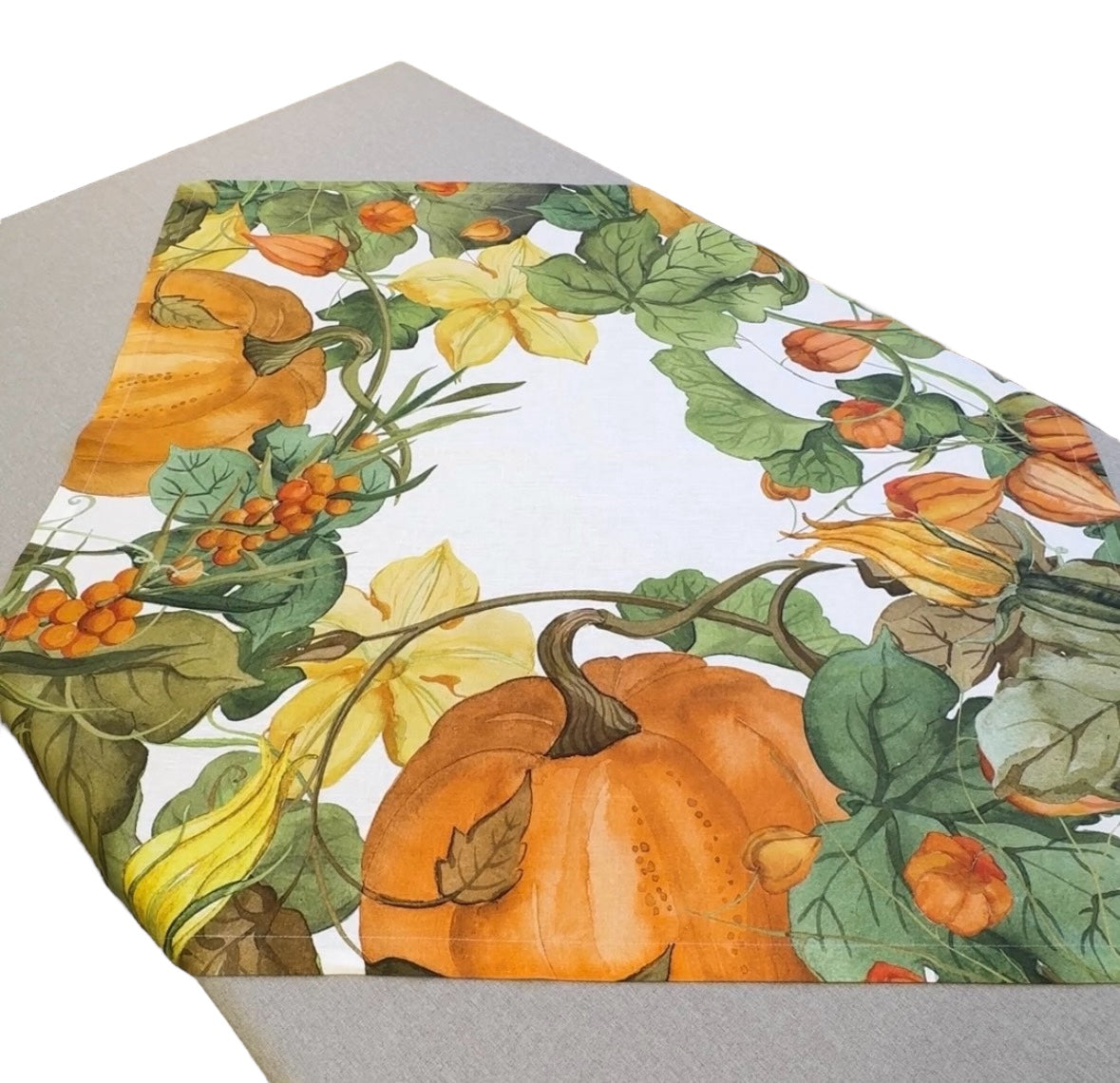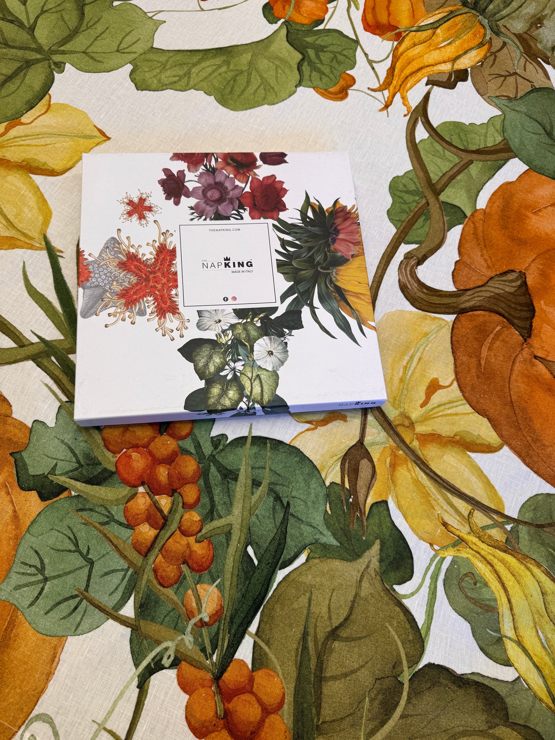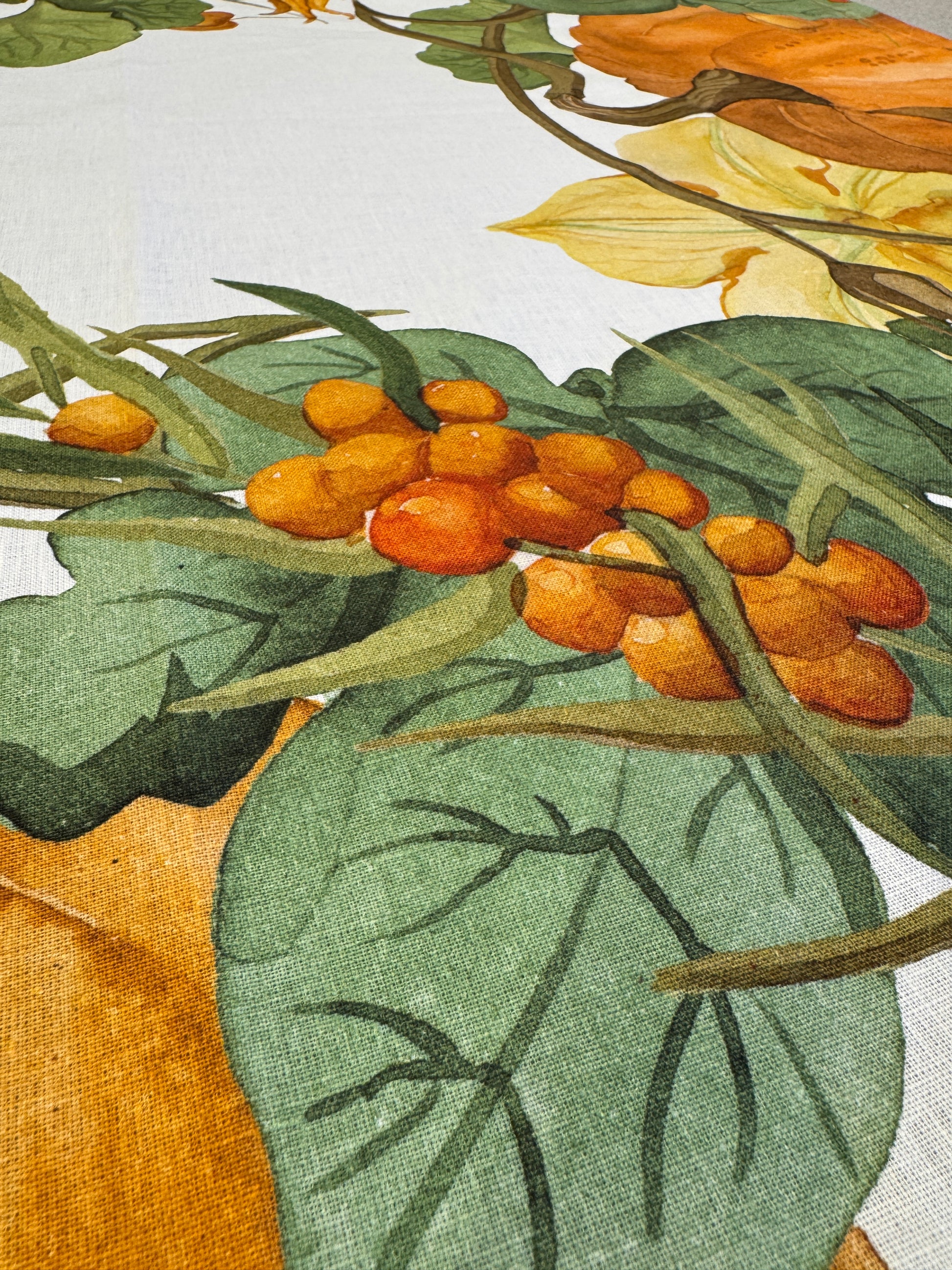 Porta in tavola l’atmosfera accogliente dell’autunno con la nostra tovaglia in 100% lino, decorata con motivi autunnali ispirati ai colori e alle forme della stagione.